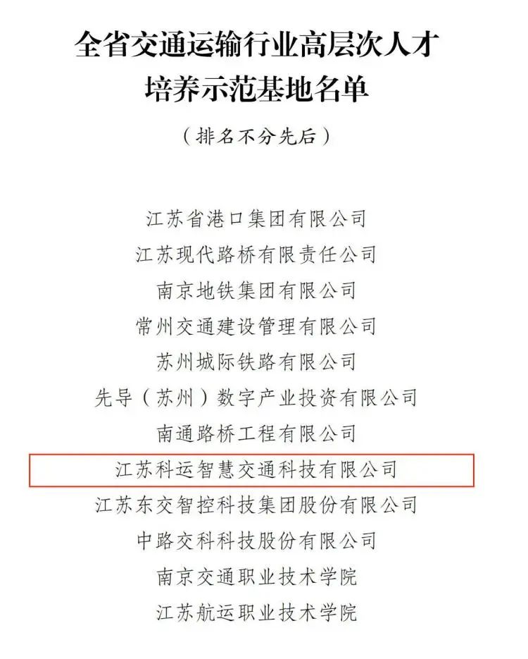 蘇交科 · 江蘇科運(yùn)智慧榮獲“全省交通運(yùn)輸行業(yè)高層次人才培養(yǎng)示范基地”稱(chēng)號(hào)